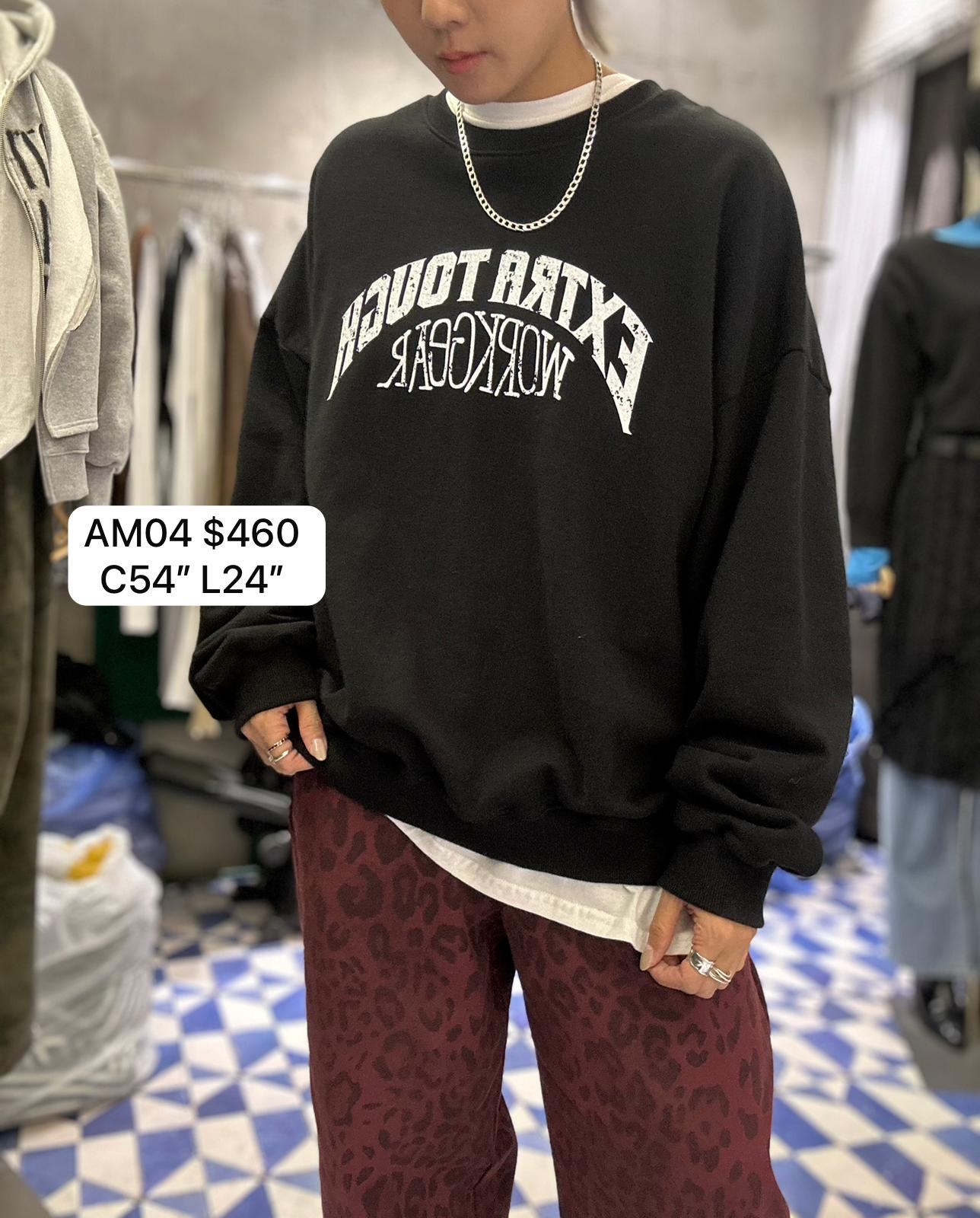 AM04 復古寬鬆字母印花圓領衛衣Cardigan