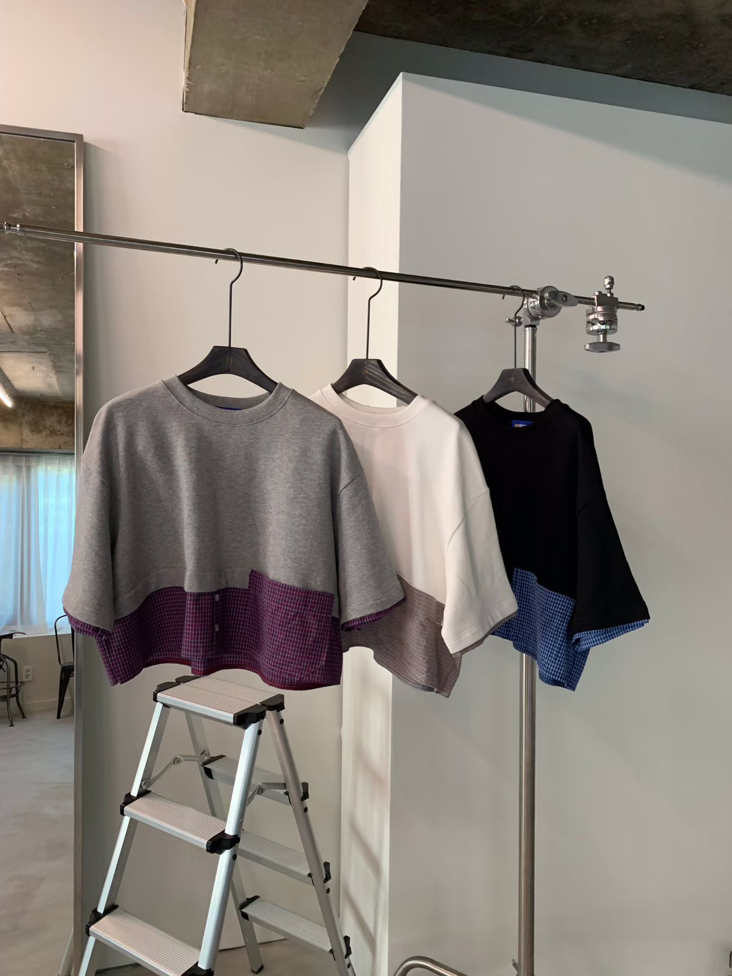 撞色拼接格子襯衫下擺寬鬆上衣